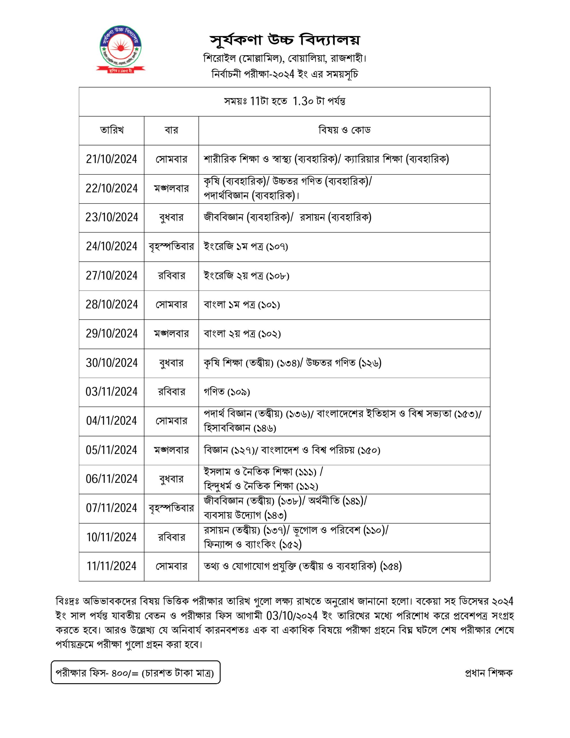 • সম্মানিত অভিভাবক ও শিক্ষার্থীবৃন্দ, আসসালামু আলাইকুম, রাজশাহী মহানগরীর প্রাণকেন্দ্রে অবস্থিত সূর্যকণা উচ্চ বিদ্যালয় একটি আদর্শ শিক্ষা প্রতিষ্ঠান। প্রতিষ্ঠানটি বর্তমানে মানুষের ভালবাসা ও ...